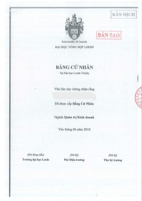 Bộ bản dịch bằng tốt nghiệp (Photo công chứng)