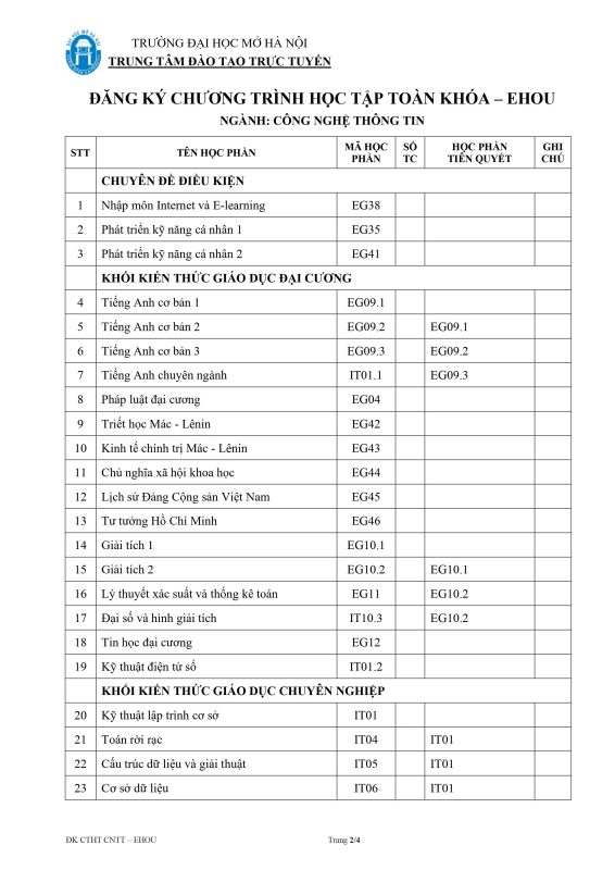Thông tin chi tiết về hồ sơ chương trình đào tạo hệ từ xa ngành Công nghệ thông tin(EHOU), bạn có thể theo dõi thêm tại: Hồ sơ xét tuyển EHOU