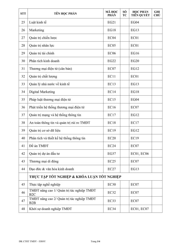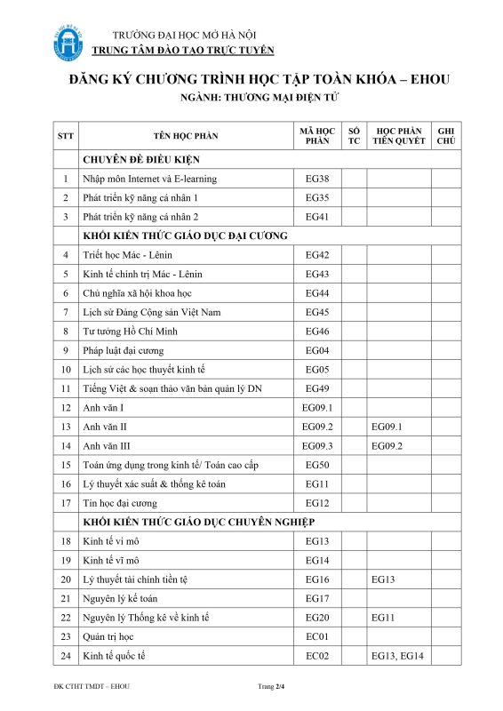 Khung chương trình học ngành thương mại điện tử- Trường Đại Học Mở Hà Nội