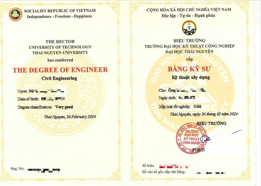 Mẫu bằng tốt nghiệp hệ từ xa Trường Đại Học Kỹ Thuật Công Nghiệp Thái Nguyên